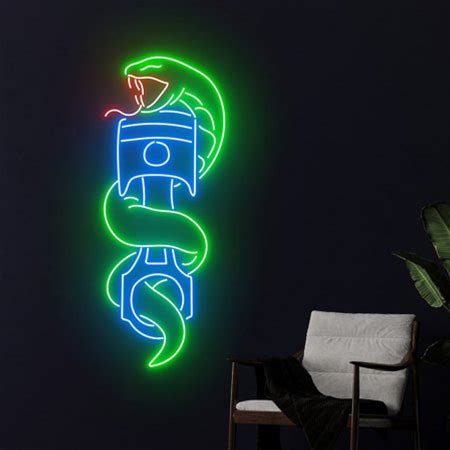Handmadetneonsign Snake Wrapping Piston Neon Sign, Snake Piston Led Sign, Piston Snake Led Light