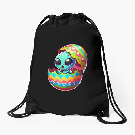 Colorful Alien Easter Egg Hatch Design Drawstring Bags